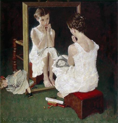 Then, a “chance” look across the table of my producer’s kitchen helicoptered my eyes to a picture. It was an image that would provide the muse from which the title song was about to come…in the space of 20 minutes. A solitary figure of a girl, not quite a woman. A girl longing for womanhood. She looks pensively, a little fearfully, into an attic mirror afraid of what she might see; of what she might not see. She is a girl yearning for something else, something yet to come, just like she whose mirror it was in front of which she now sat might have thought years before.