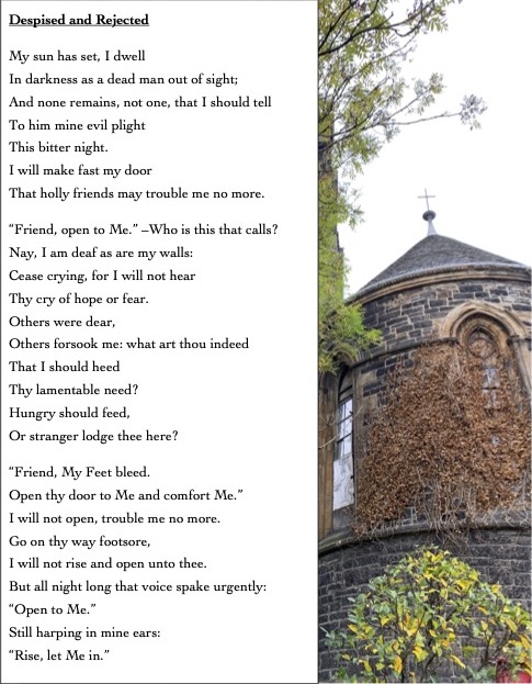 I missed a day. So, our beautiful offering from Christina Rossetti will make for two days in one. I hope you enjoy it as much as I did, and still do.